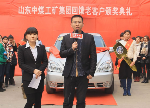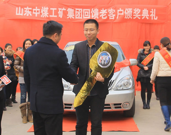 2月3日上午,山东中煤集团“2015年回馈客户积分返利”抽奖活动送出首辆汽车大奖——一辆别克商务汽车,来自东泰机械的张总成为积分让利抽奖活动首位大奖获得者。