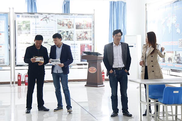 徐州客商在工作人员的带领下首先参观了中煤集团卡特智能机器人公司和智能装备生产车间,对我集团的生产制造能力、生产技术研发、资质等各方面进行了全方位的了解。随后,集团无人机专业技术人员就中煤卡特智能机器人的设计理念、主要功能、技术优势、交互体验等方面为徐州客商做了详细的介绍,并现场为客商进行了智能机器人操作演示。