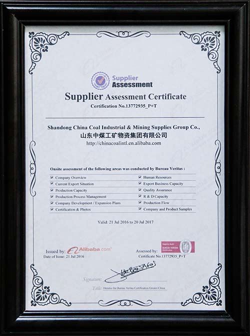 金品诚企是阿里巴巴根据买家采购习惯推出的综合性推广服务,旨在帮助企业快速赢得买家信任,促进交易。该服务通过国际第三方权威认证机构为企业的关键信息 进行评估和认证,包括企业能力评估报告、主营产品认证及验厂视频等。金品诚企认证专家组一行先后多次莅临中煤集团,对我集团的资质荣誉、专利商标、财务报 表、人力资源管理、外贸出口能力、研发管理能力、生产能力、质量控制能力、工艺管理能力、产品生产情况、企业发展规划等情况作了详细核验及拍摄,经过评审 专家组全方位的严格审核,一致认为我集团提供的资料全面、内容详实,产品技术先进、质量可靠,均达到金品诚企认证所要求的严格标准,为所有申请参加认证的 企业树立了模范标杆。