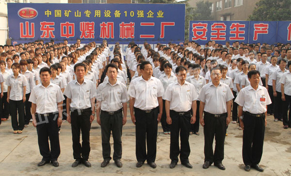 在雄壮的国歌声中,国旗在山东中煤和山东中运两面公司旗帜的伴随下冉冉升起,全体人员行注目礼。公司董事长兼总经理渠青授权公司常务副总经理韩勇在升旗仪式上发表了热情洋溢的讲话。随后,公司副总经理李振波、物流公司经理孙志民、李广龙、机械二厂厂长谭文清等相继发言。升旗仪式结束后,全体员工参观了机械二厂。