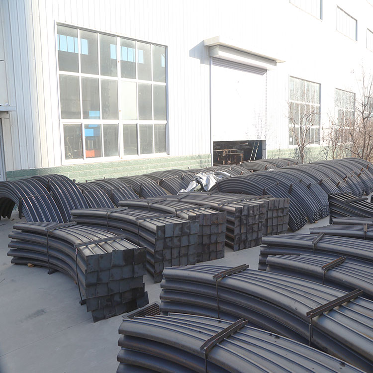 U29型U型钢支架柱腿有3种形式,一种是上部为圆弧形,下部为直线段;第二种是全部为曲线形,且只有一个曲率半径;第三种是全部为曲线形,但有两个曲率半径。柱腿下面焊有底座,底座的大小视底板软硬而定;