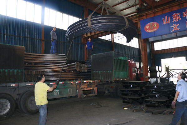 5月21日下午,山东中煤工矿集团生产的一批U型钢支架正式装车,将发往内蒙古某大型煤业公司。